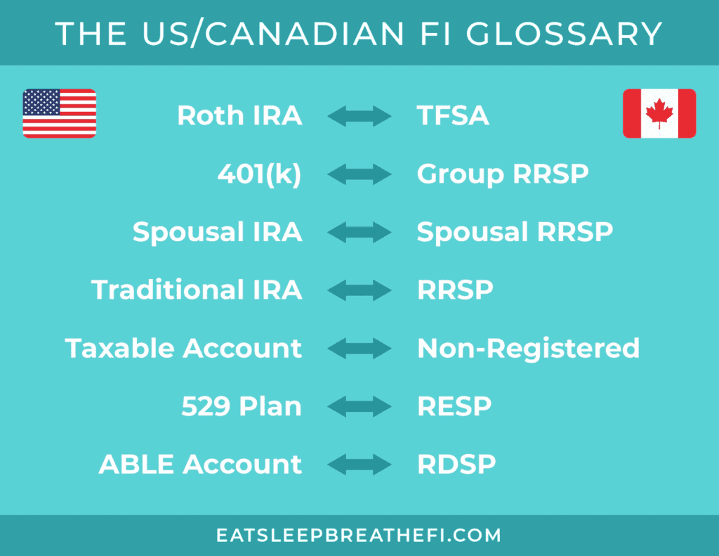 Investing Accounts: Canada vs. U.S. This graphic shows the Canadian equivalents to common U.S. investing accounts so you can confidently translate into your financial reality.